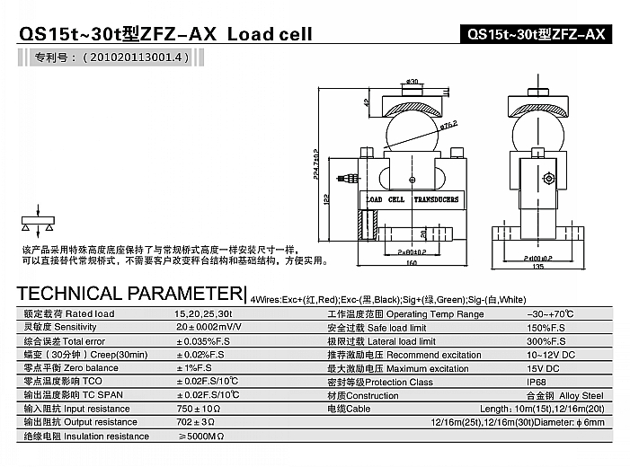 產品名稱:QS15t~30t型ZFZ-AX稱重傳感器