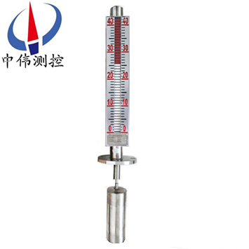 3、液位計安裝完畢后,需用磁鋼進行校正,對磁翻柱導(dǎo)引一次,使零位以下顯示有紅色,零位以上顯示為白色。