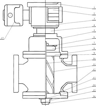 注:1、儀表盤2.電池3.二次表4.連接座5.U型帽6.發(fā)訊片7.定位齒輪8.上蓋板9.O型環(huán)10.軸11.轉(zhuǎn)子12.主體13., 上蓋板14.止推軸承15.調(diào)節(jié)螺釘16.底蓋17.遠(yuǎn)傳體。