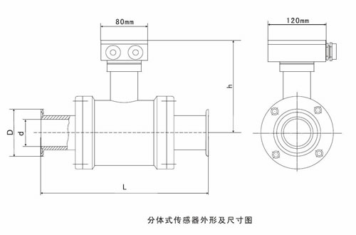 b、分體型:傳感器和轉(zhuǎn)化器分離安裝,通過連接電纜形成流量計量系統(tǒng)。